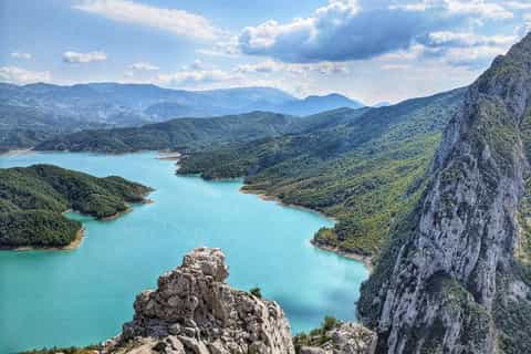 Albania con lago Koman e Monte Tomorri